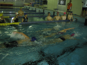 スイム講習は、選手達の実践練習も見てもらいます。