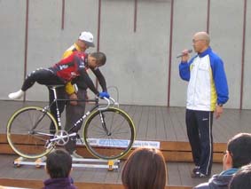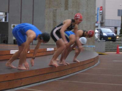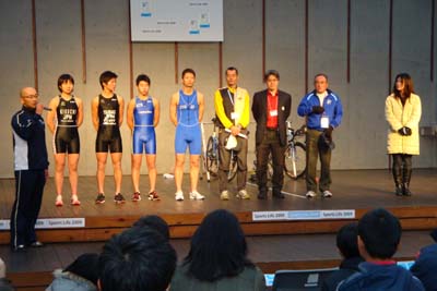 村上塾の報告では、1年間のレースシーンを映像でみていただき、さらにデモンストレーションでは、本当にミニトライアスロンをやってしまいました