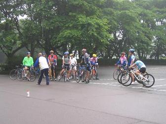 昨夜の宴会が嘘のように真剣なバイク講習。なんと朝6時です