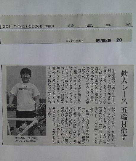昨日5月19日付けの地元栃木の新聞社、下野新聞に菊池選手優勝の記事が掲載されましたのでご紹介します。